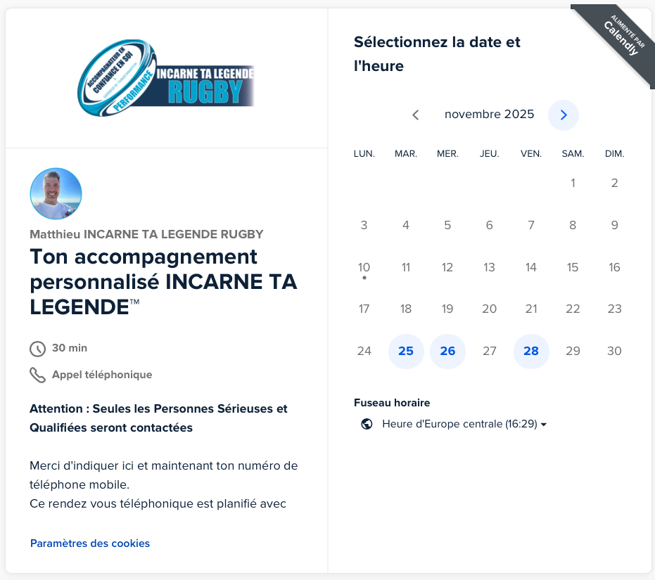 ✅ Pour être aujourd'hui libre d'exprimer tout ton plein potentiel à chaque match et ainsi te rapprocher avec plus de fluidité vers ton but celui de vivre la carrière de rugby qui t'inspire au plus profond, tu as l'opportunité de vivre ici et maintenant ton accompagnement personnalisé de transformation INCARNE TA LEGENDE™ avec dans un premier temps un rendez vous téléphonique avec moi-même Matthieu pour en discuter ensemble.