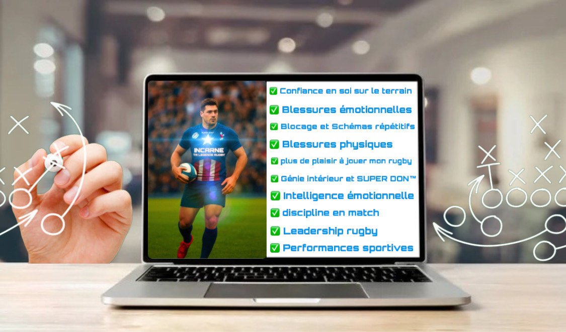 Durant ton accompagnement personnalisé INCARNE TA LEGENDE™, je te guide comment l'utiliser pour t'aider à améliorer tes performances sportives et à vivre la carrière de rugby que tu as réellement envie de vivre aujourd'hui.